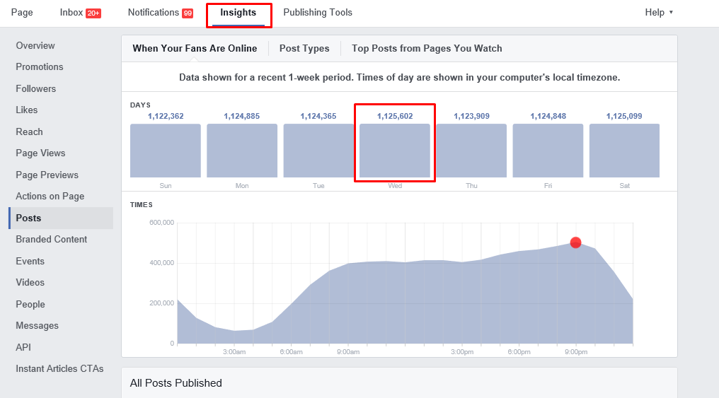 One way to find out your best time to upload your content on social media is to upload when many of your followers are online, as there is a higher chance of them seeing and engaging with your content. This data can be found in your Facebook Page Insights under the β€œPosts” tab.